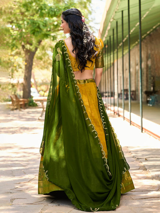 Green Color Zari Weaving Work Jacquard Silk Lehenga Choli