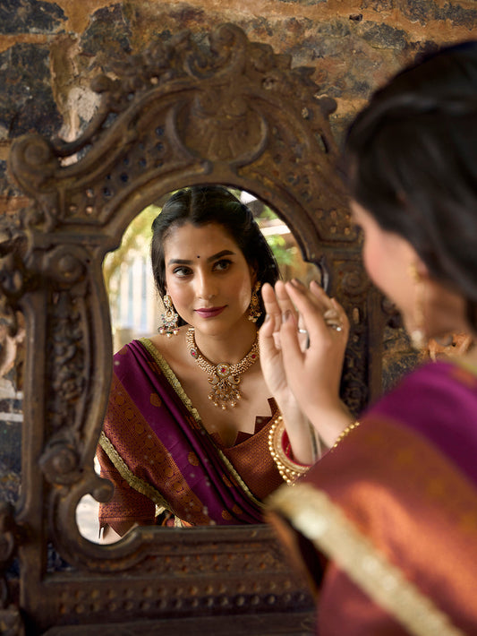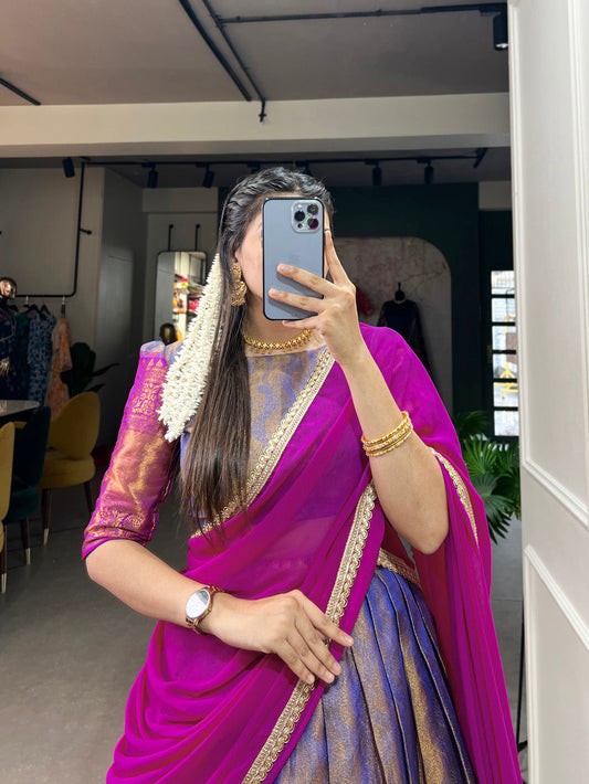 Purple Color Zari Weaving Work Jacquard Silk Lehenga Choli