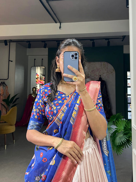 Blue Color Zari Weaving Work Kanjivaram South Indian Lehenga Choli