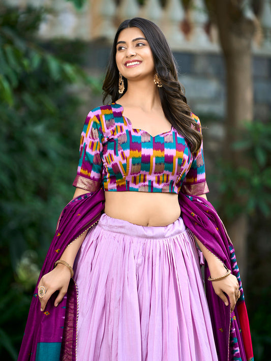 Lavender Color Zari Weaving Work Jacquard Silk Lehenga Choli