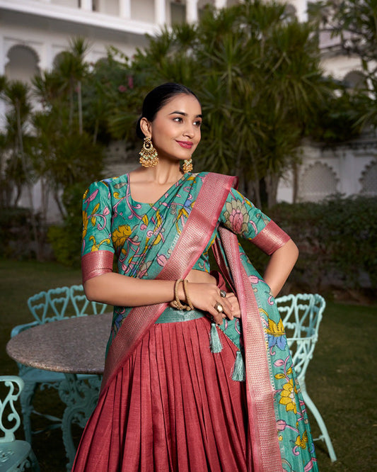 Rani Pink Color Floral Print With Zari Weaving Work Dola Silk Lehenga Choli