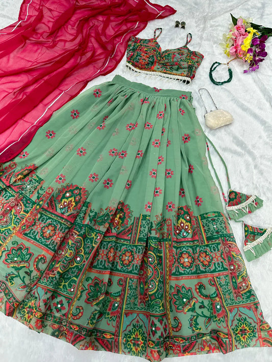 Digital Printed Pista Green color Kalamkari Lehenga Choli