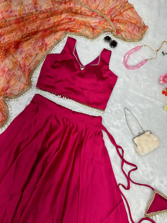 Fancy Satin Silk Pink Lehenga Choli With Net Dupatta