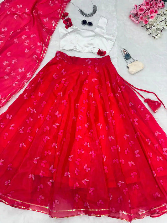 Marvelous Butterfly Print Red Color Lehenga Choli