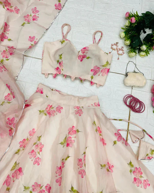 Casual Wear Pink Color Digital Printed Lehenga Choli