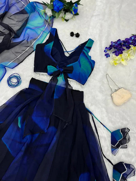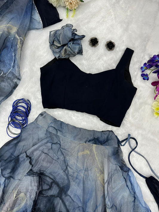 Navy Blue Color With Flower Digital Print Lehenga Choli