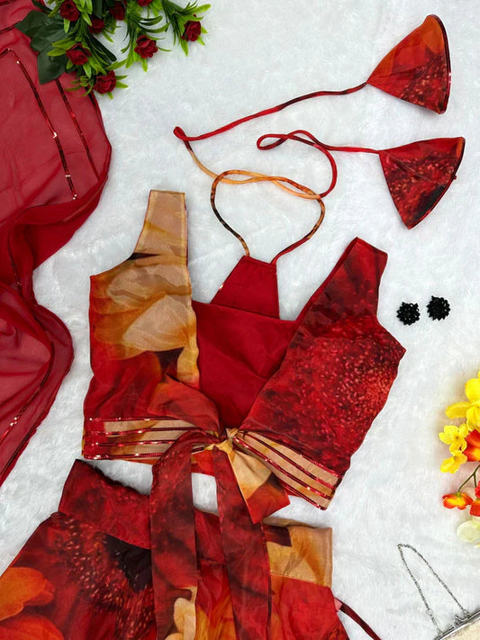 Black Color With Red Flower Digital Print Lehenga Choli