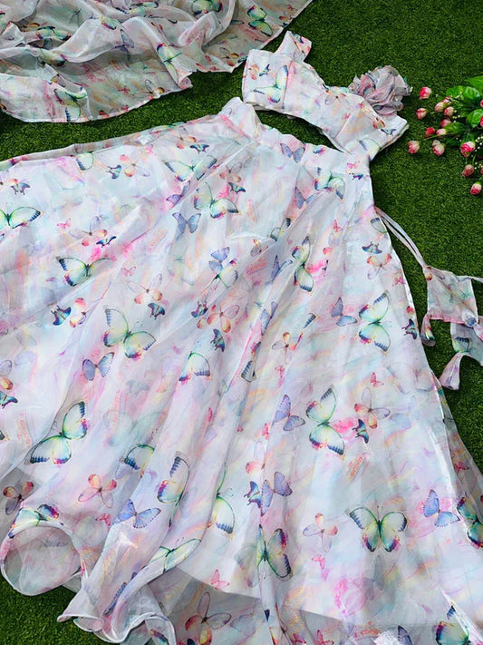 Organza Silk Digital Printed Fully Stitched Blue Color Lehenga Choli