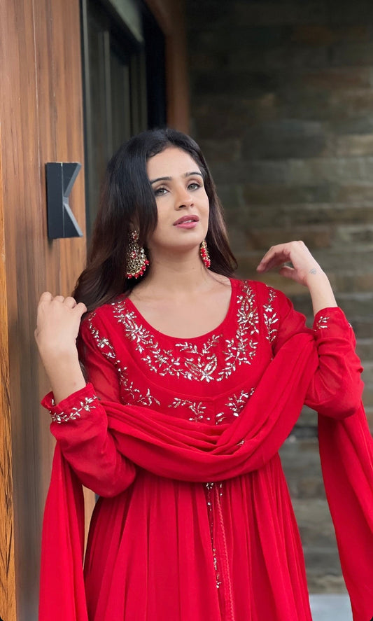 Wedding Wear Maroon Color Faux Georgette With Coding And Sequence With Pearl Work Beautiful Designer Sharara Suit