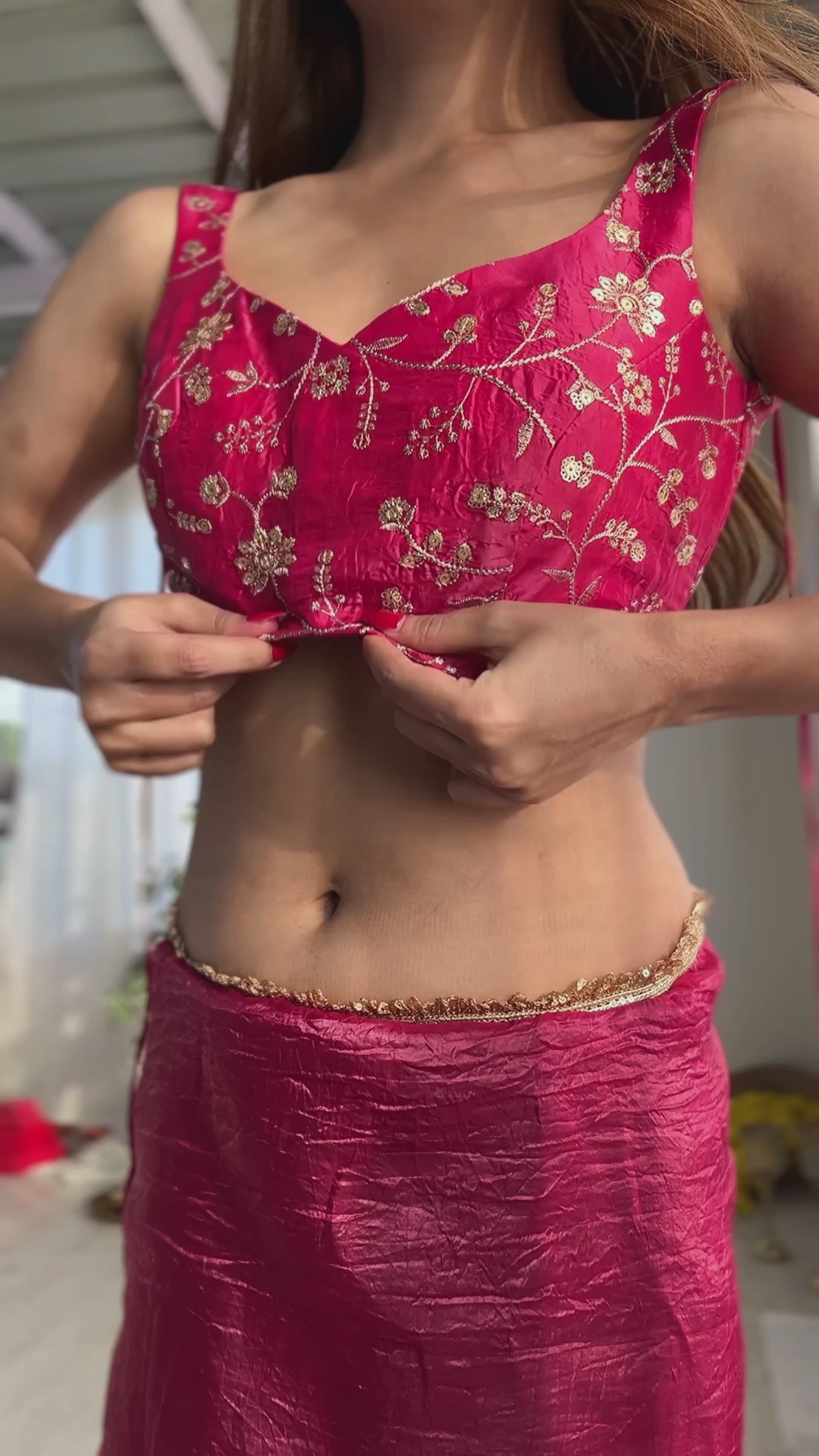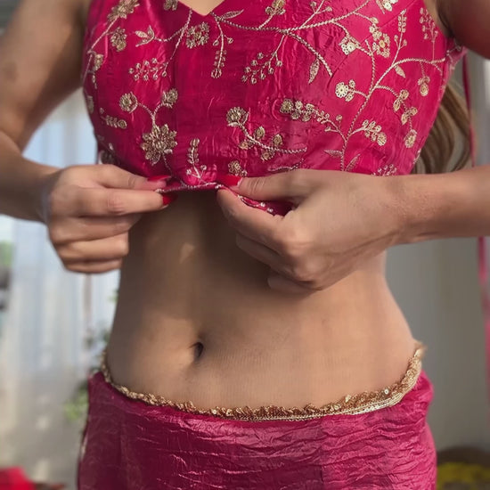 Rani Pink Color Tissue Silk Pre draped Saree